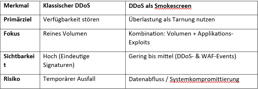 Dieses Muster lässt auf einen „Smokescreen“- Angriff schließen. Die dahinterstehende Logik ist so simpel wie gefährlich: