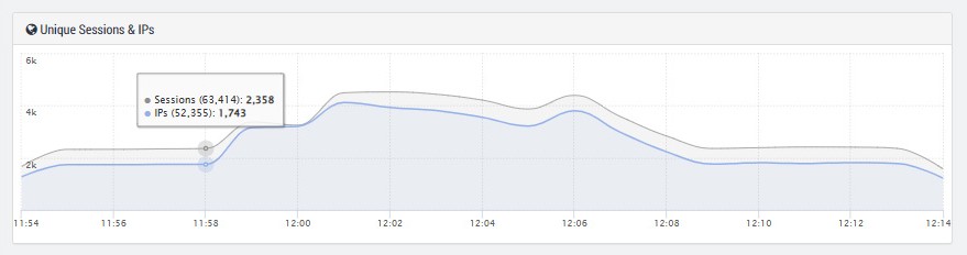 In the first scenario, the login area was bombarded with approximately 16 million requests. Several thousand IP addresses primarily targeted the root domain.